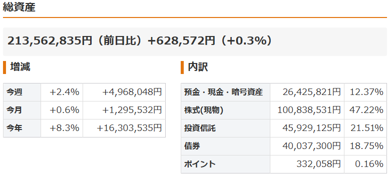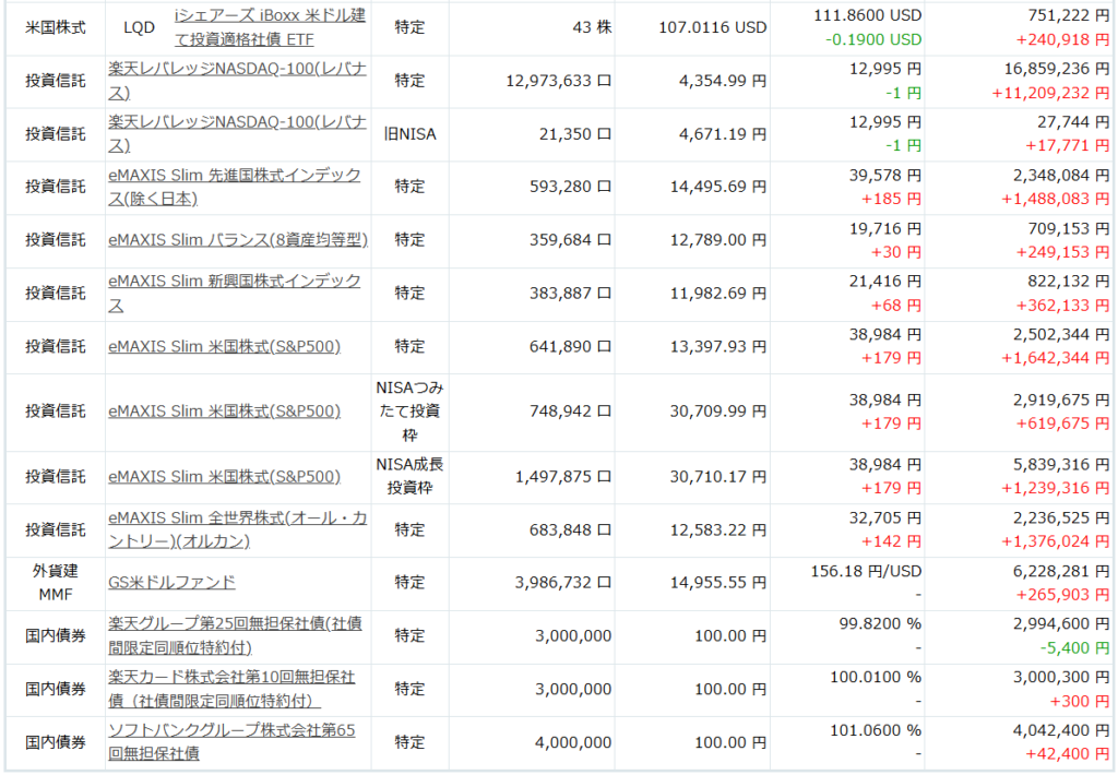 週末になりましたので、保有資産を公開します。