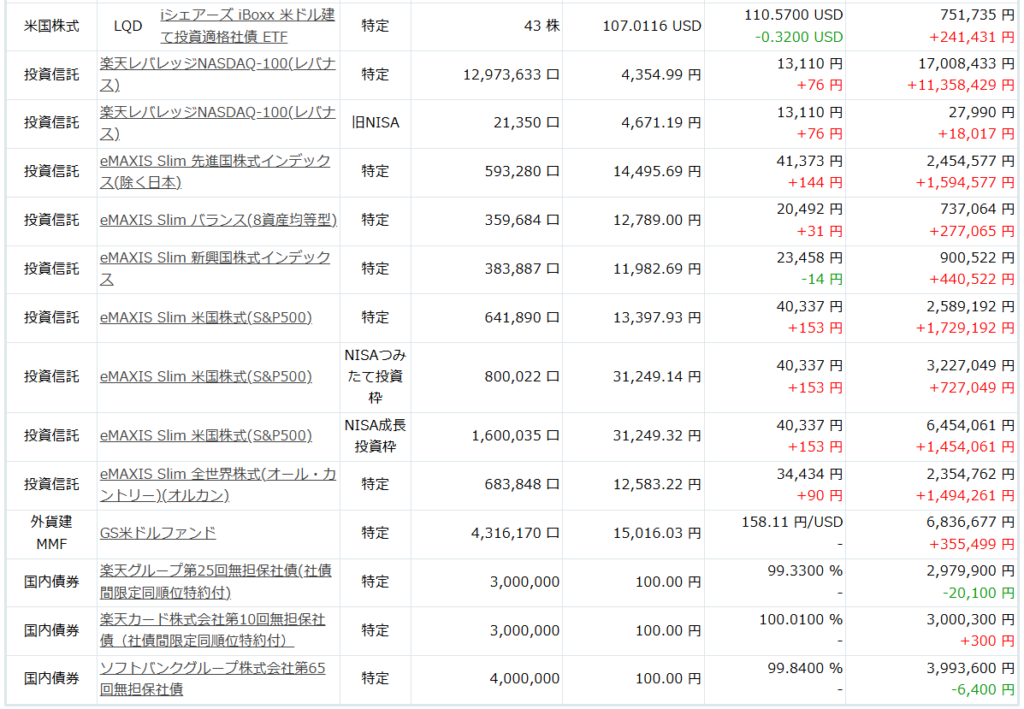 週末になりましたので、保有資産を公開します。