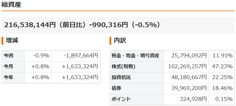 週末になりましたので、保有資産を公開します。