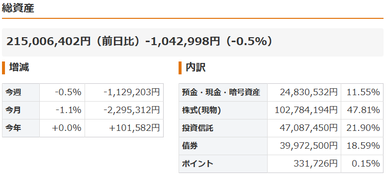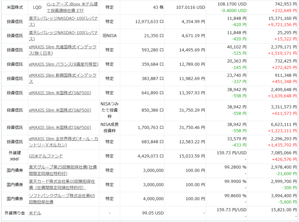 週末になりましたので、保有資産を公開します。